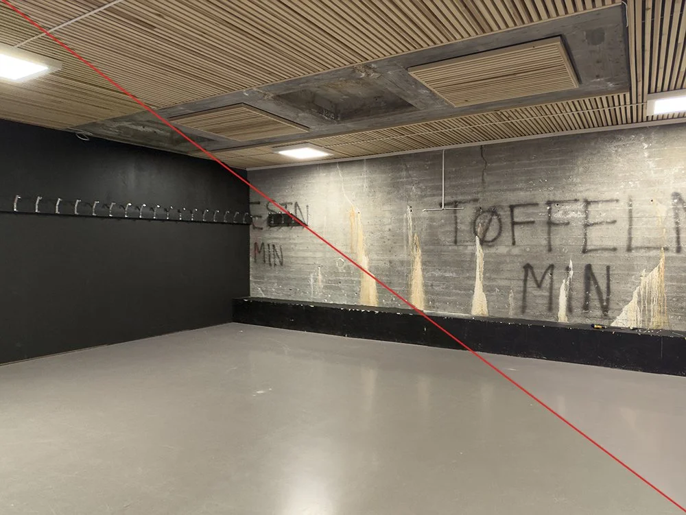 Fra vi ønsket velkommen til første konserten i 2021 har vi hatt et lite område til yttertøy. Størrelsen var begrenset, så det var bare rom for tre knaggrekker med totalt 61 doble kroker.