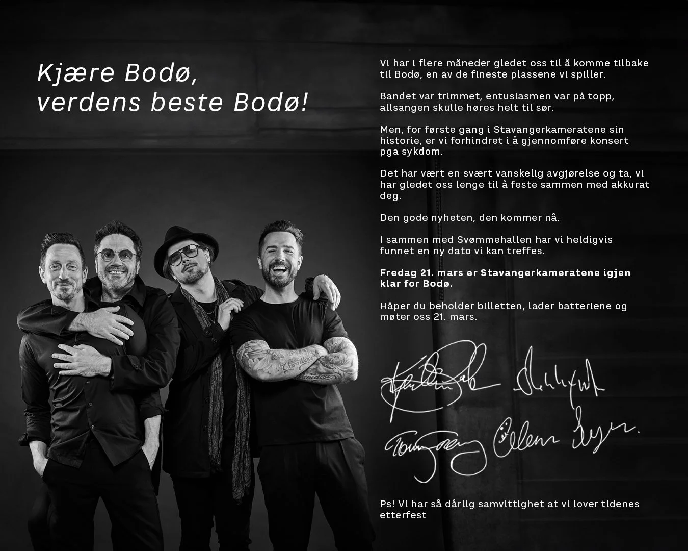 Dersom den nye datoen ikke skulle passe, er det mulig å refundere billetter ved å logge inn på din side på ticketmaster.no.