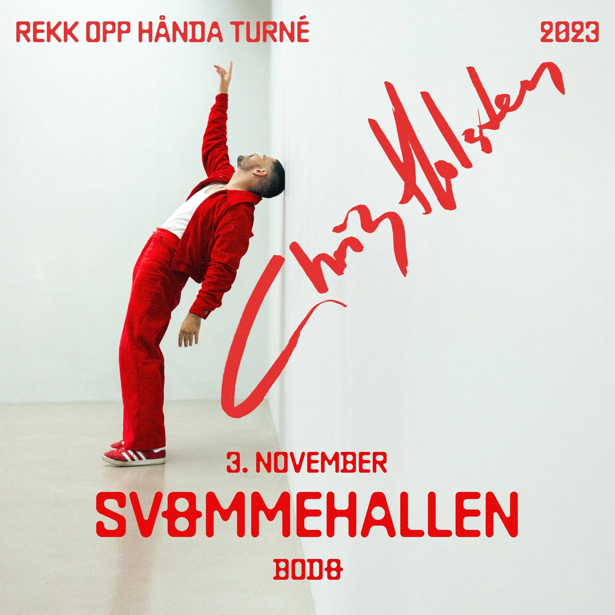 Siden har det gått slag i slag for artisten fra Lillestrøm og i fjoråret ble avsluttet med en utsolgt konsert i Oslo Spektrum, som var en barndomsdrøm som gikk i oppfyllelse. Nå er han klar for å fylle Oslos storstue igjen og inviterer også publikum til «REKK OPP HÅNDA TURNÉ» i konserter i fire norske og to danske byer. Det hele starter i Bodø og Svømmehallen Scene den 3. november!