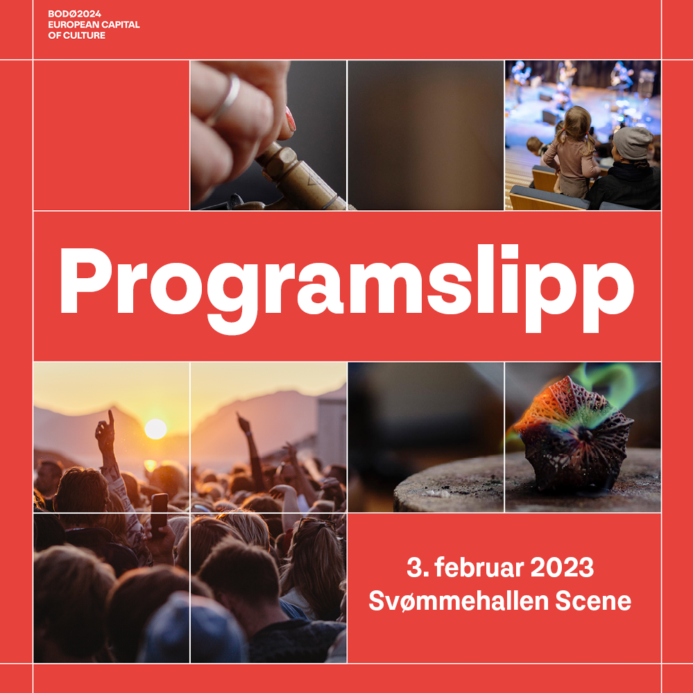 Nå skjer det! Det største kulturprosjektet i Nord-Norge noen sinne er kun ett år unna. 3.februar har Bodø2024 sitt første programslipp, nøyaktig ett år før åpningsseremonien for kulturhovedstadsåret. Her vil du få en smakebit på hva som faktisk skal skje i 2024 og når du må holde av plass i kalenderen din. Året kommer til å bli fylt med små og store prosjekter, som følger lystet og fargene gjennom sesongene.